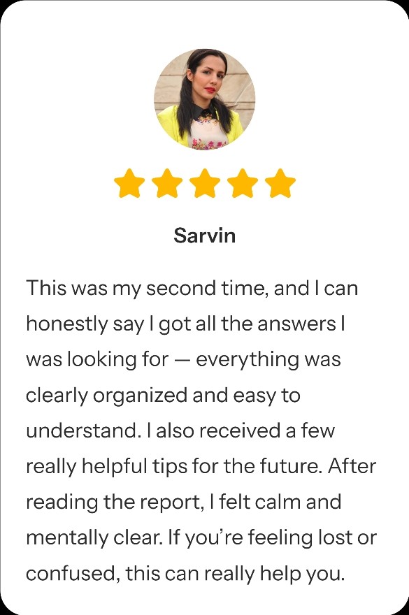 After each reading, you will receive a detailed PDF containing the Tarot spread used, an in-depth interpretation of the cards, and personalized guidance to help you move forward with clarity and confidence.